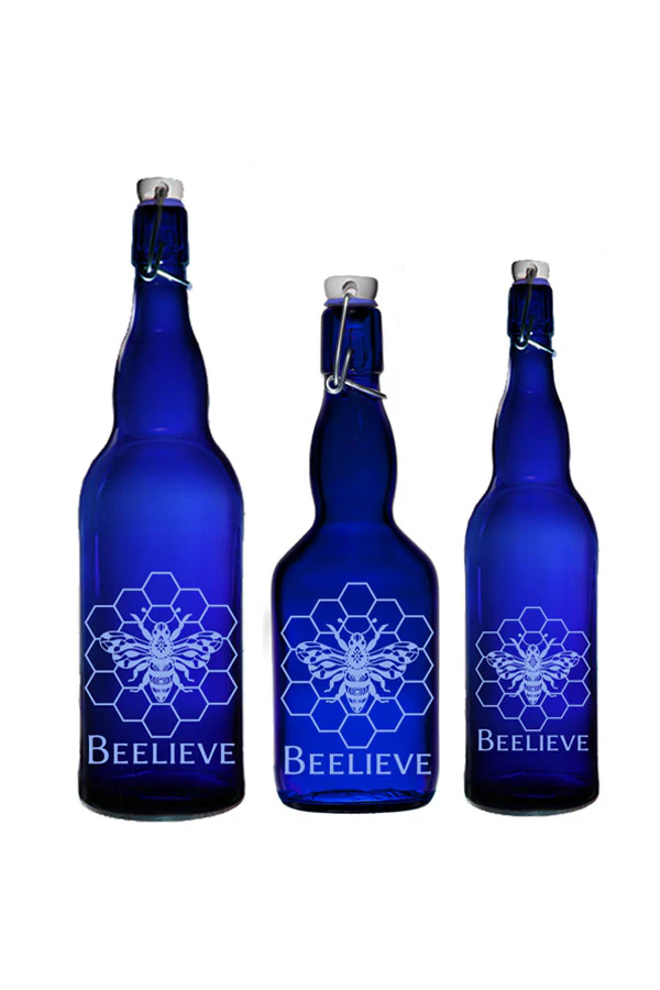 This bottle has been created to honor the BEES…who have been declared our most important living being on Earth. They are such an incredible species….with the innate and extremely important role of being the pollinators of the plant kingdom…pollination is essential to plant reproduction. It is inconceivable to imagine our world without bees…it is up to us to protect them and stand up for their rights and their very important existence.