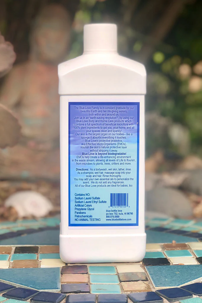 Our skin is the largest organ on our bodies– like a sponge it absorbs everything it touches. Blue Love’s protective probiotics, aka Effective Micro-Organisms (EMOs), nourish the skin’s natural protective layer without stripping it away.